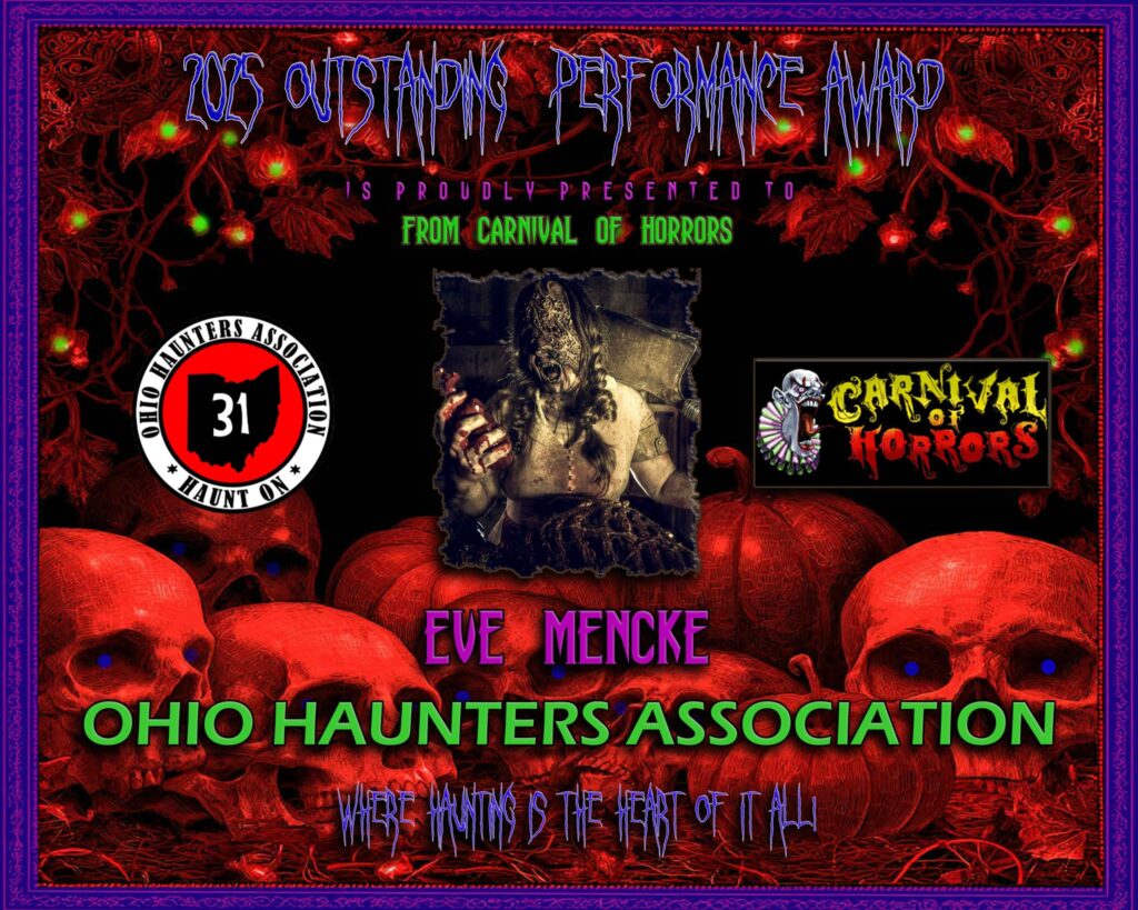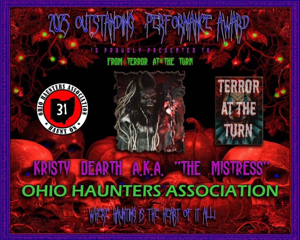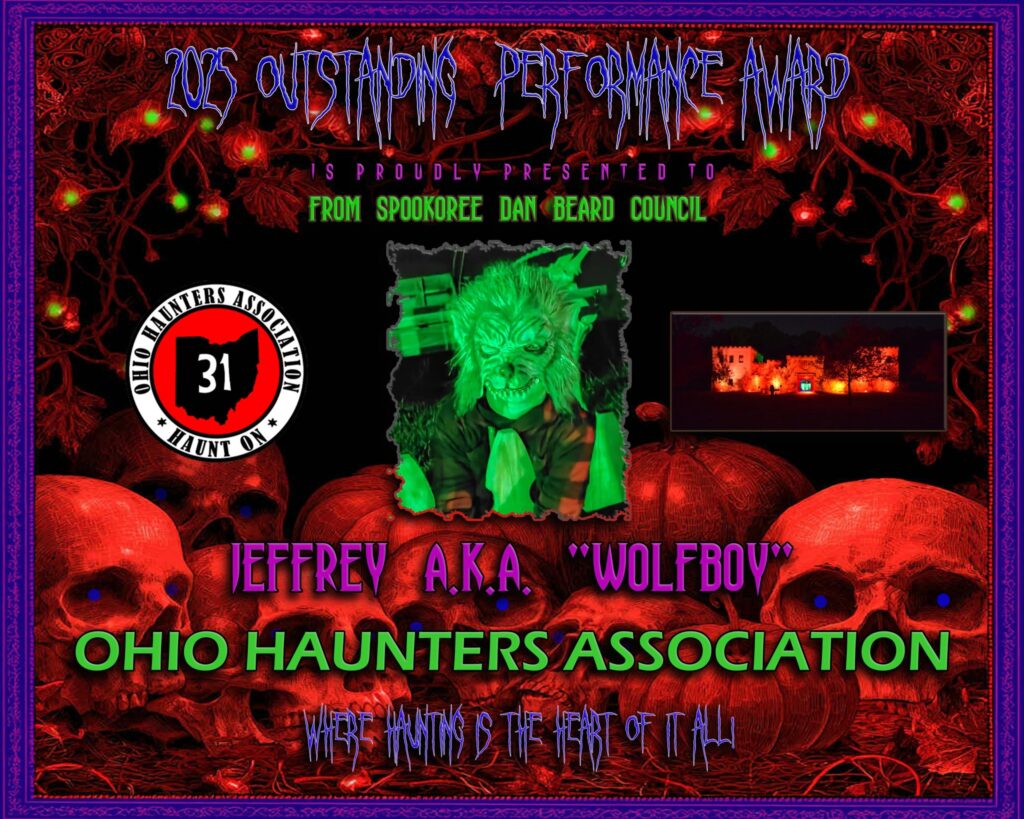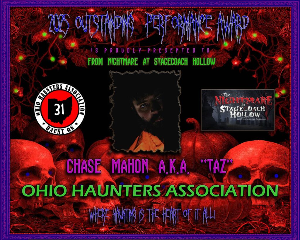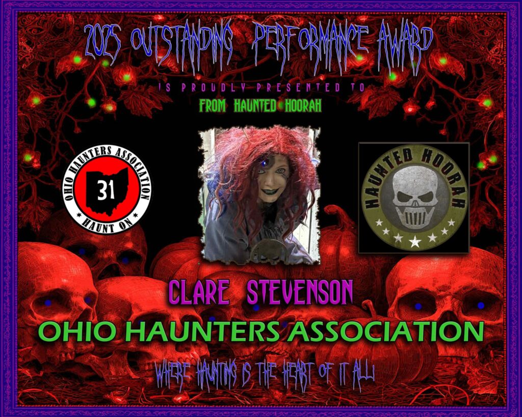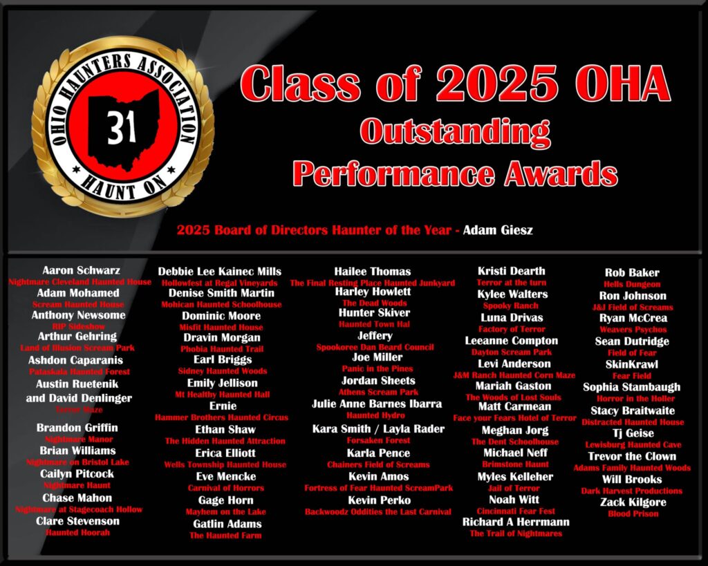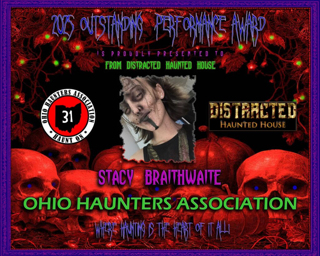The Ohio Haunters Association will be offering haunts the opportunity for your performers to receive recognition for their performance. The Outstanding Performance Award for 2025 is meant for whichever staff member you felt went above and beyond this season!
