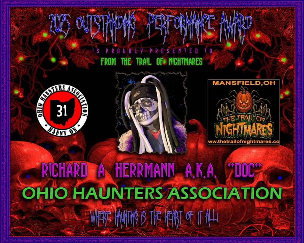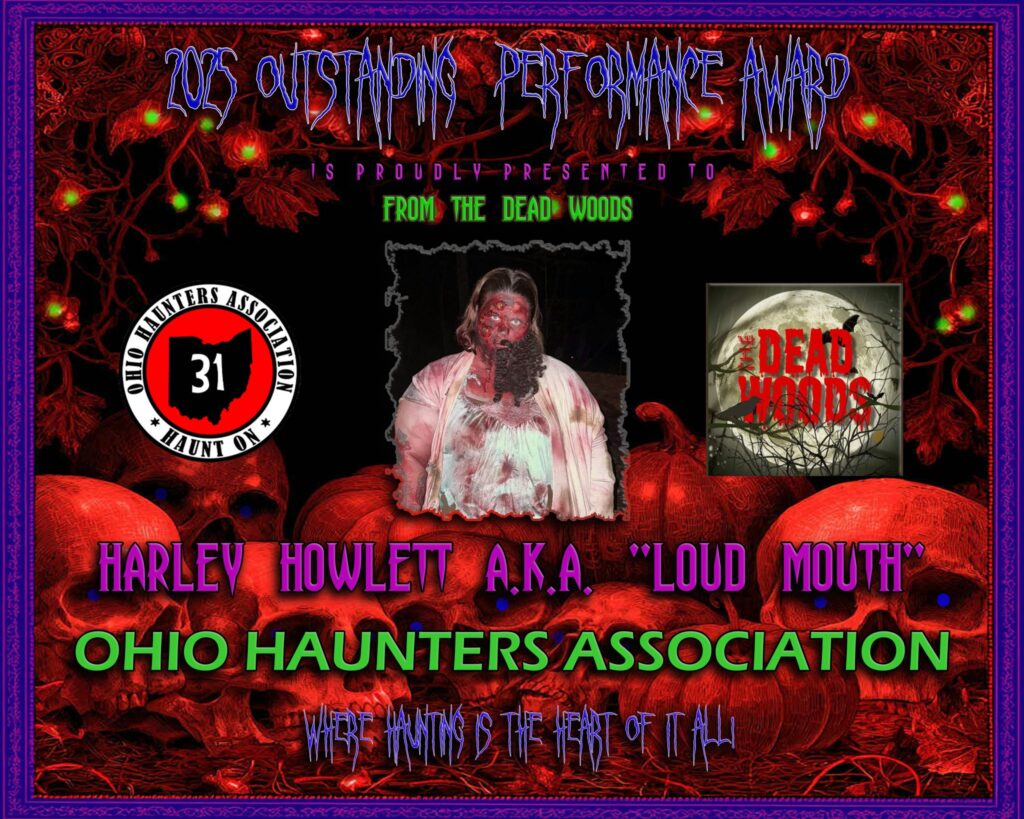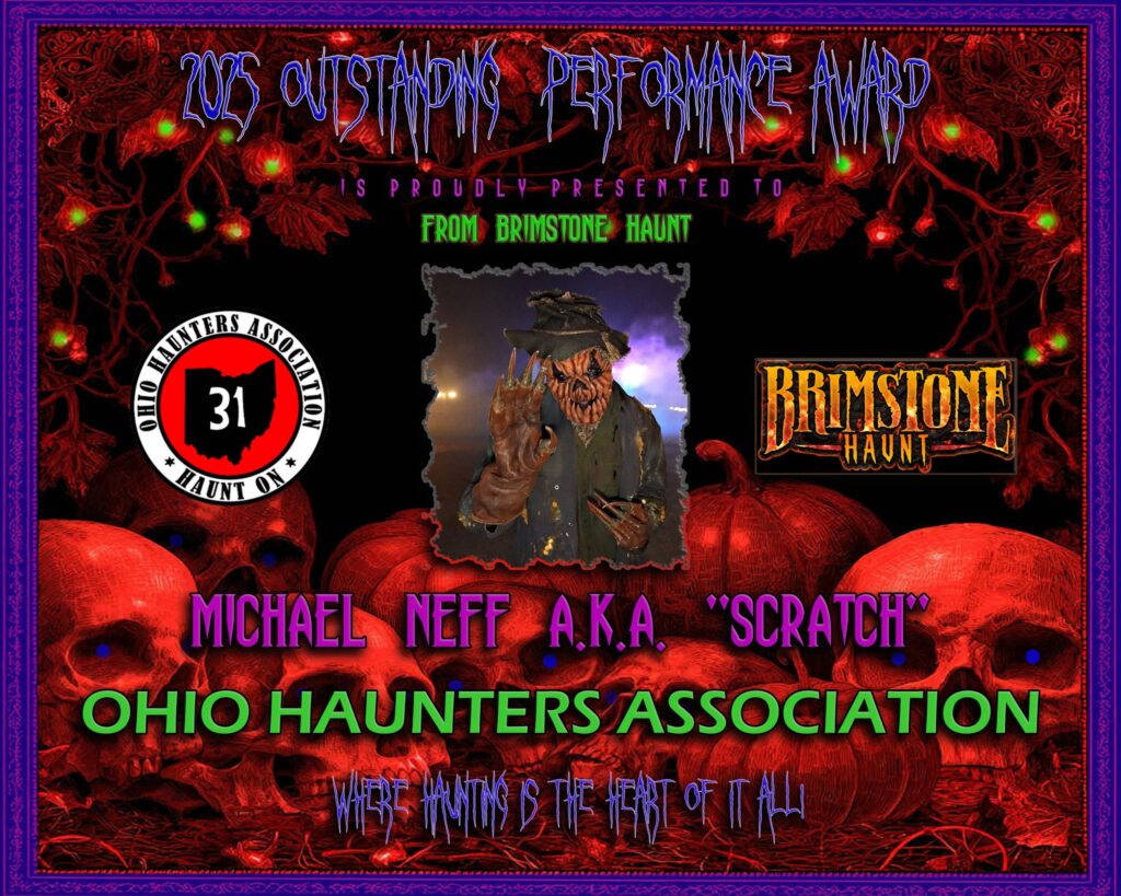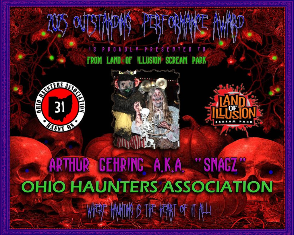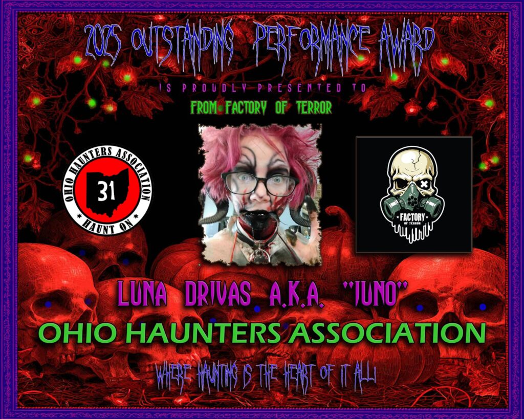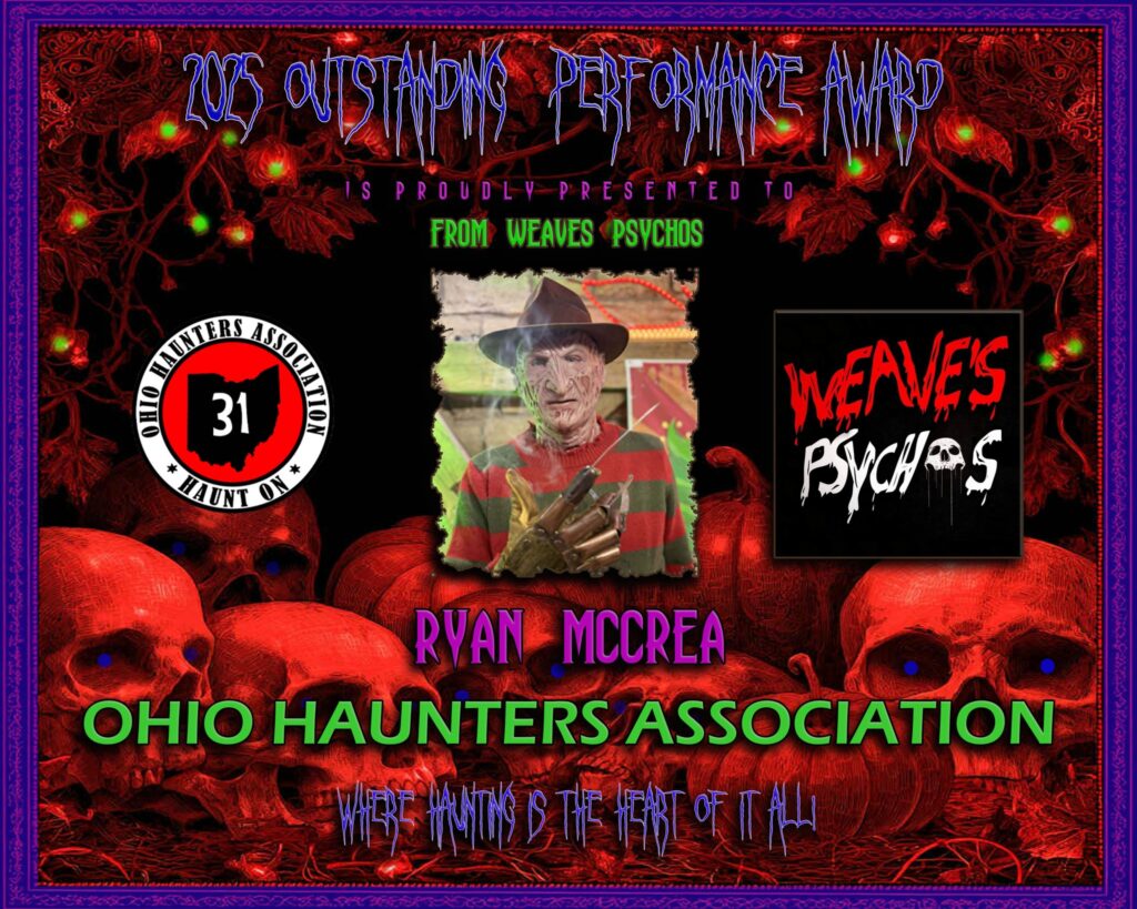 The Ohio Haunters Association will be offering haunts the opportunity for your performers to receive recognition for their performance. The Outstanding Performance Award for 2025 is meant for whichever staff member you felt went above and beyond this season!