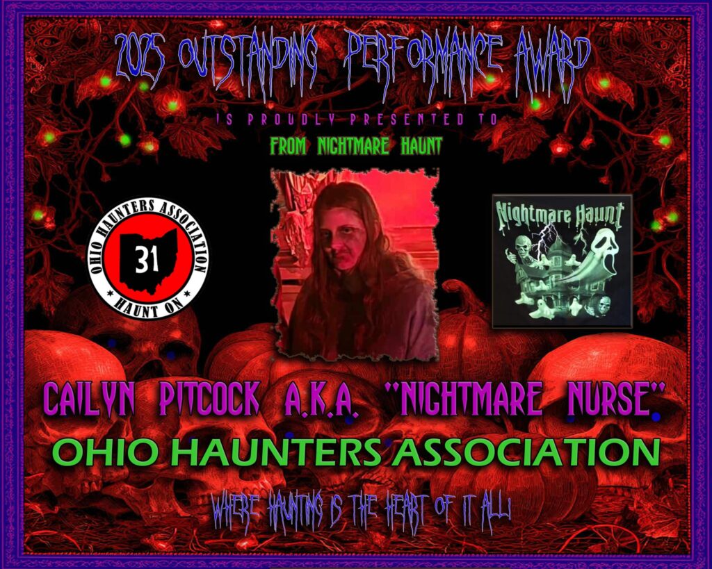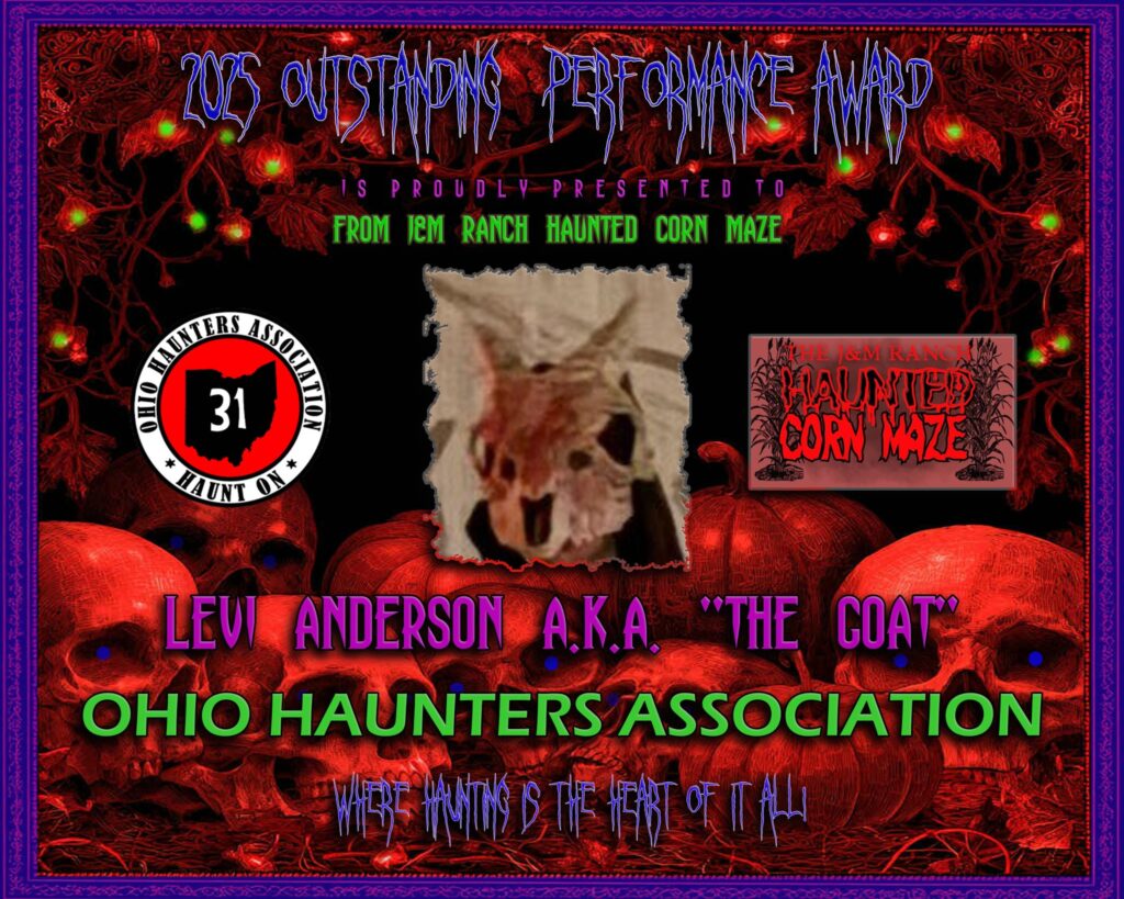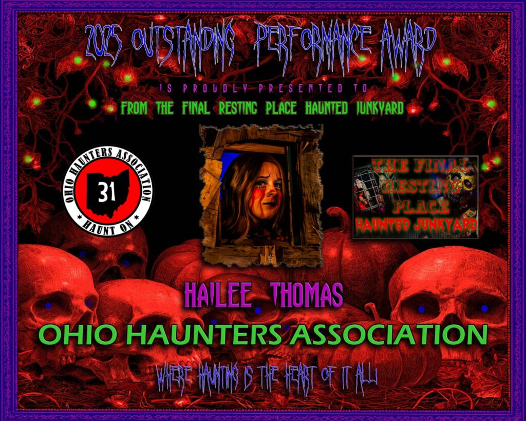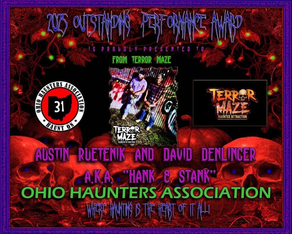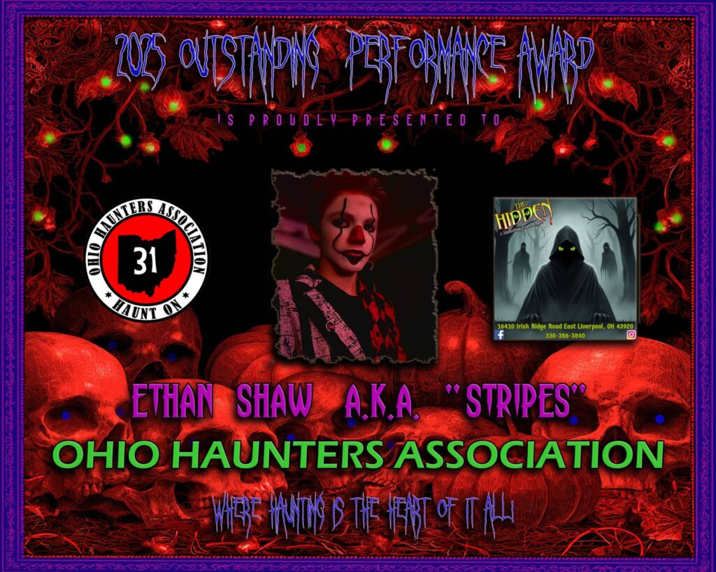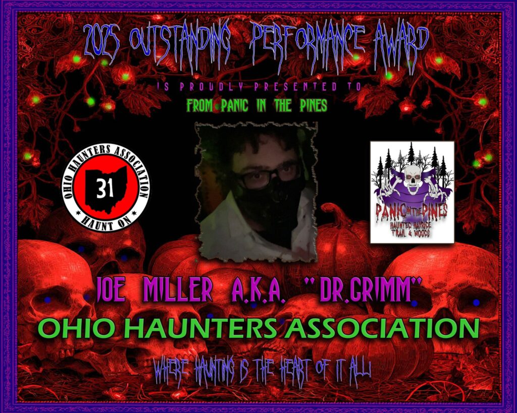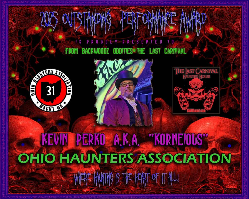 The Ohio Haunters Association will be offering haunts the opportunity for your performers to receive recognition for their performance. The Outstanding Performance Award for 2025 is meant for whichever staff member you felt went above and beyond this season!