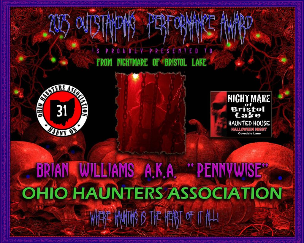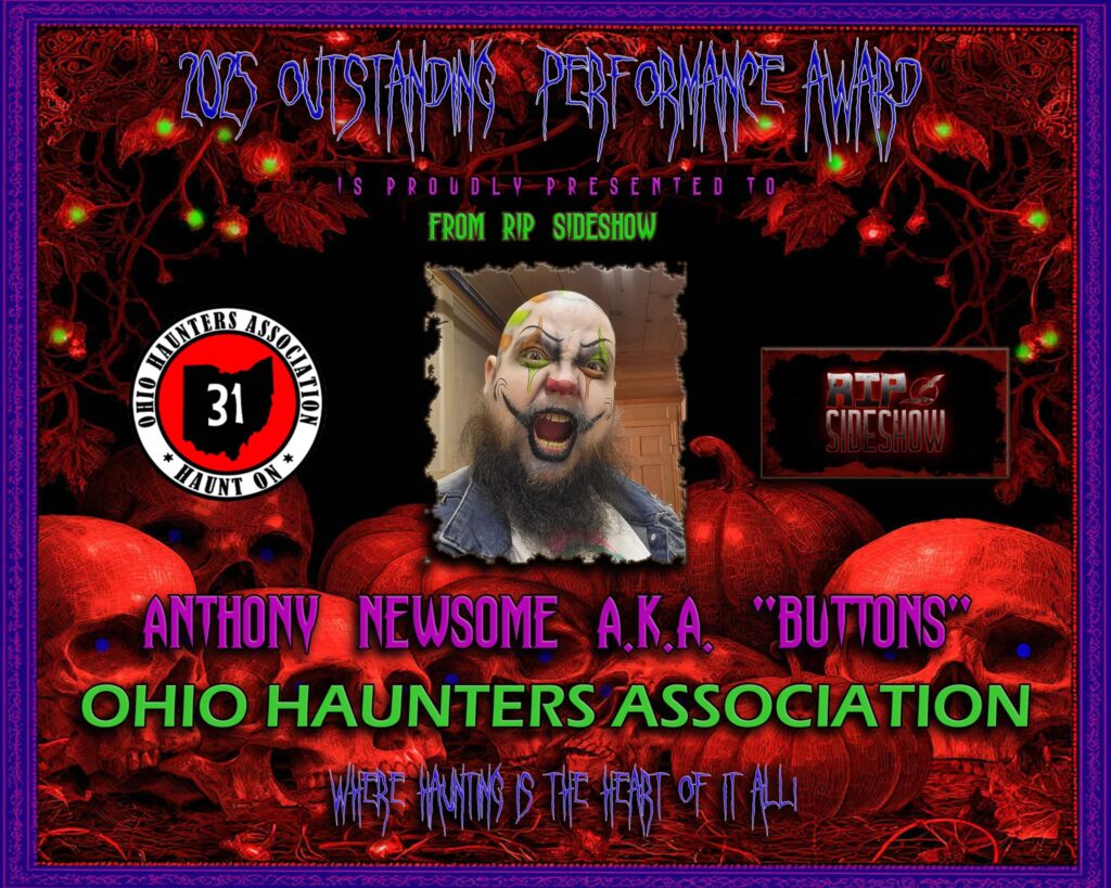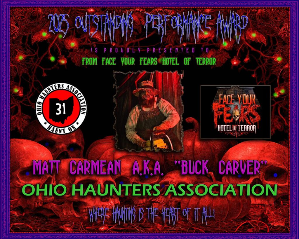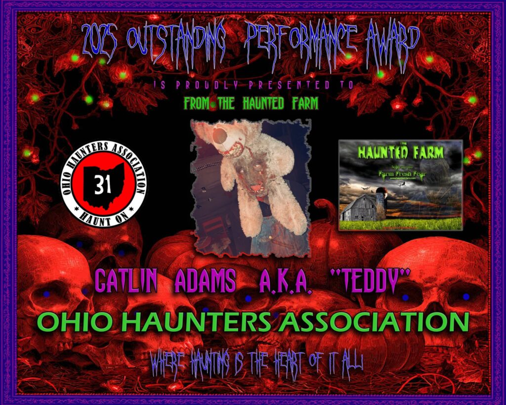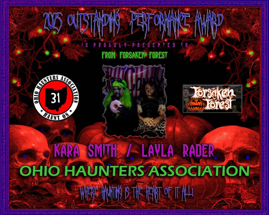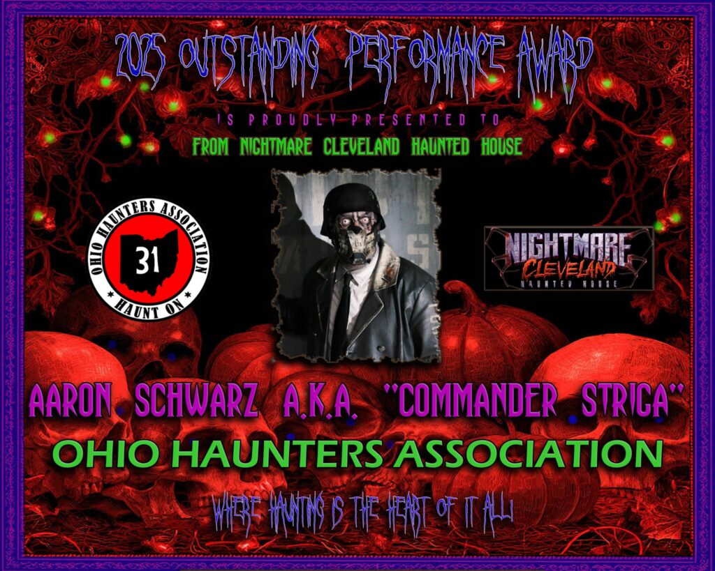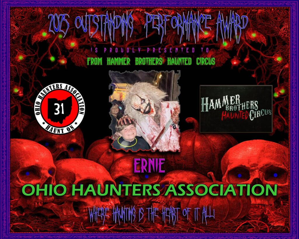 The Ohio Haunters Association will be offering haunts the opportunity for your performers to receive recognition for their performance. The Outstanding Performance Award for 2025 is meant for whichever staff member you felt went above and beyond this season!